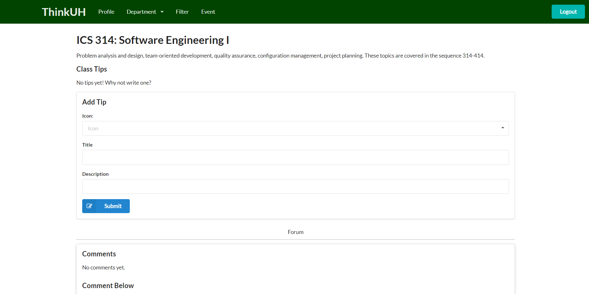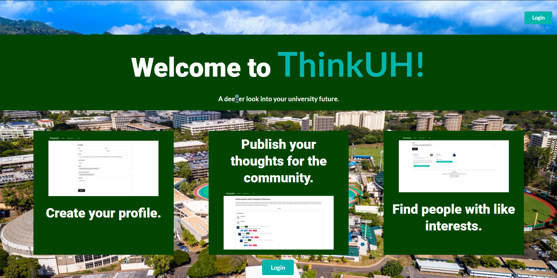 ThinkUH is a crowd-sourced information source for your academic courses and your community. Join and learn from fellow students about what your future is really like, and what is presently going on!
