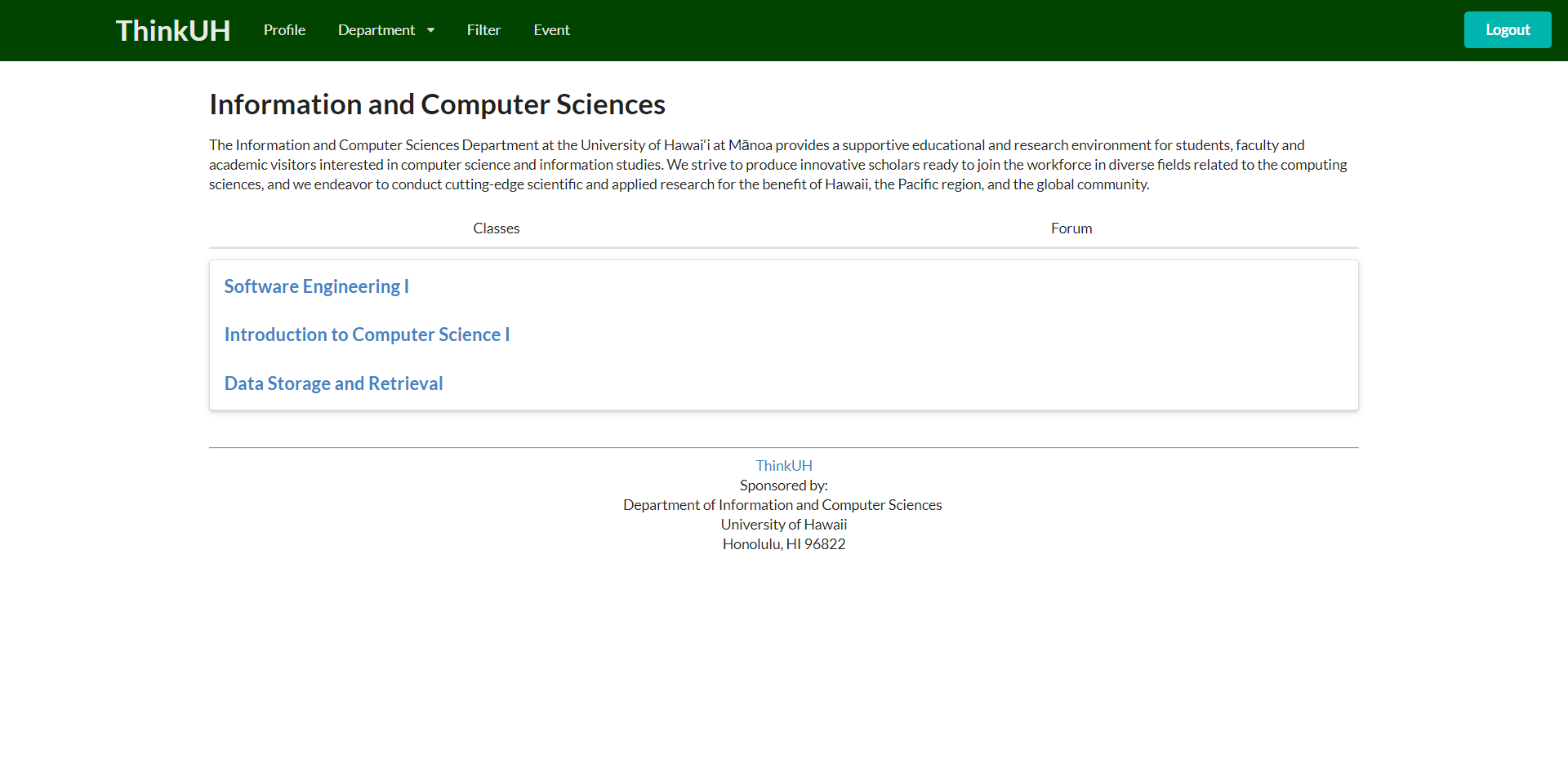 From the ‘Departments’ menu, you can navigate to the pages for individual majors, where you will be able to interact on the major’s forum, or see a list of classes you will need to take in the future.